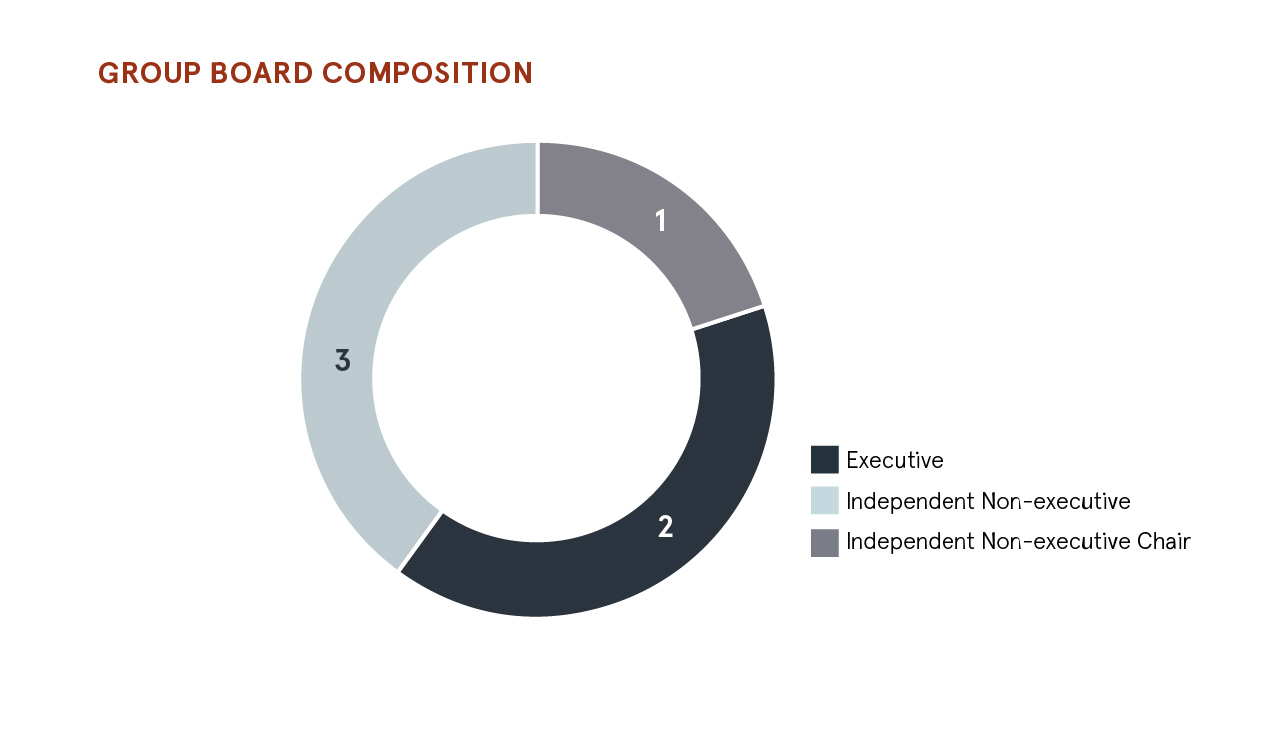 The Board comprises six Directors, two Executive Directors being Christopher (Chris) Lee and Claire Thomson and four independent Non-executive Directors being Anne de Kerckhove, Yvonne Monaghan, David Moss and Markus Bihler. The Board believes that this combination ensures a clear balance of responsibilities between the executive and the non-executive functions and that no individual (or small group of individuals) can dominate the Board’s decision-making. The Board has a desirable range of different skills, experiences and backgrounds which ensure the continued development and focus of our businesses on their key objectives, please see biographies (Board Biographies) for more information.